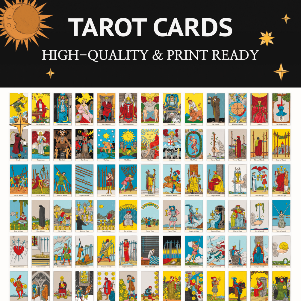 Beautifully designed tarot cards, ready to print and use for personal readings or practice.
