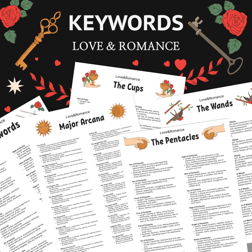 A curated list of essential tarot keywords focused on love and relationships to deepen your readings and interpretations.